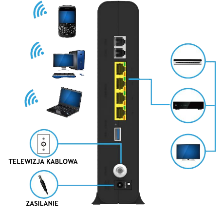 Możesz łatwo użyć kabla sieciowego Ethernet, aby podłączyć dowolny komputer w jednym z interfejsów Ethernet,